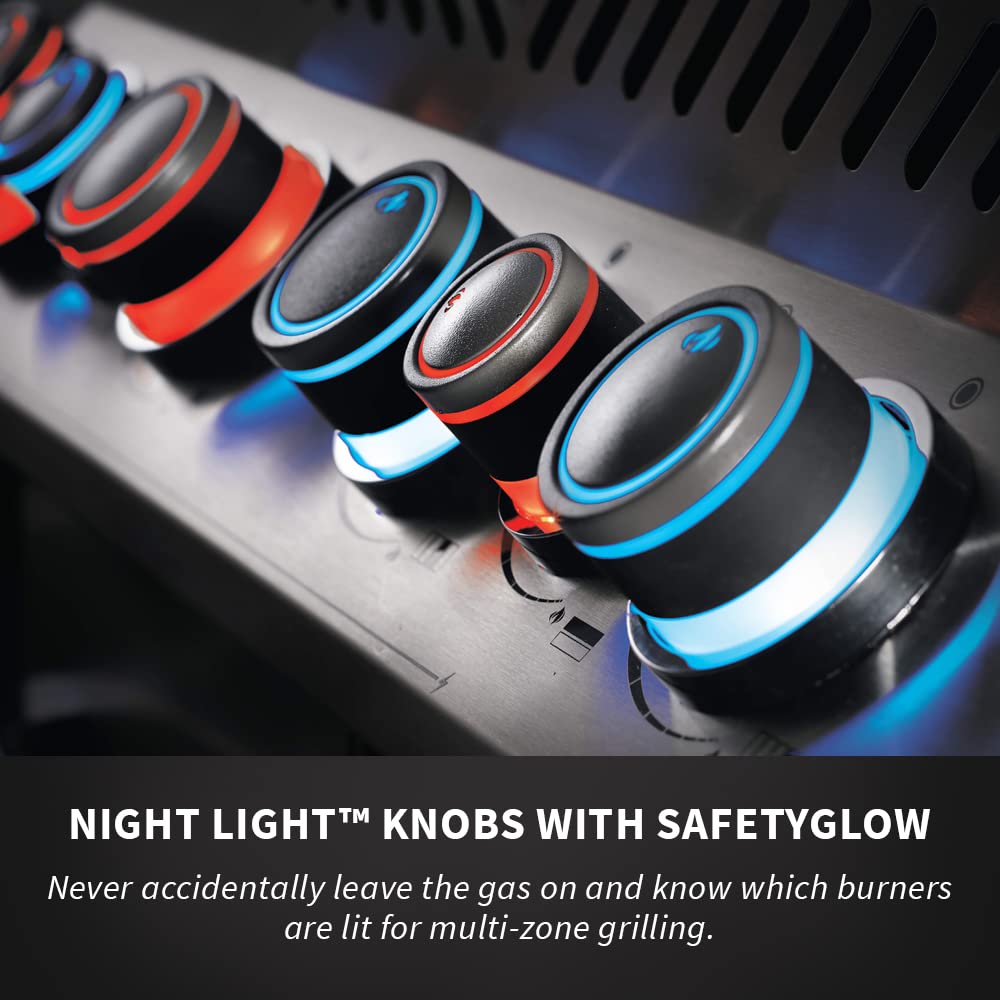 Details: The Napoleon prestige 500 propane gas grill with infrared side constructed From high quality Stainless Steel, This cart Model has the capabilities of a full outdoor kitchen. With four main burners, an infrared rear under the lid, is the same quality Stainless Steel Used for the basin, tube burners, DUAL-LEVEL sear plates, & cooking grids. Seven Stainless Steel sear plates provide extra surface area for any drippings from your food to vaporize, avoiding flare-ups. Never leave your barbecue on again as all the Prestige series grills come with the safety glow feature where the control knobs glow red When the burner is on.