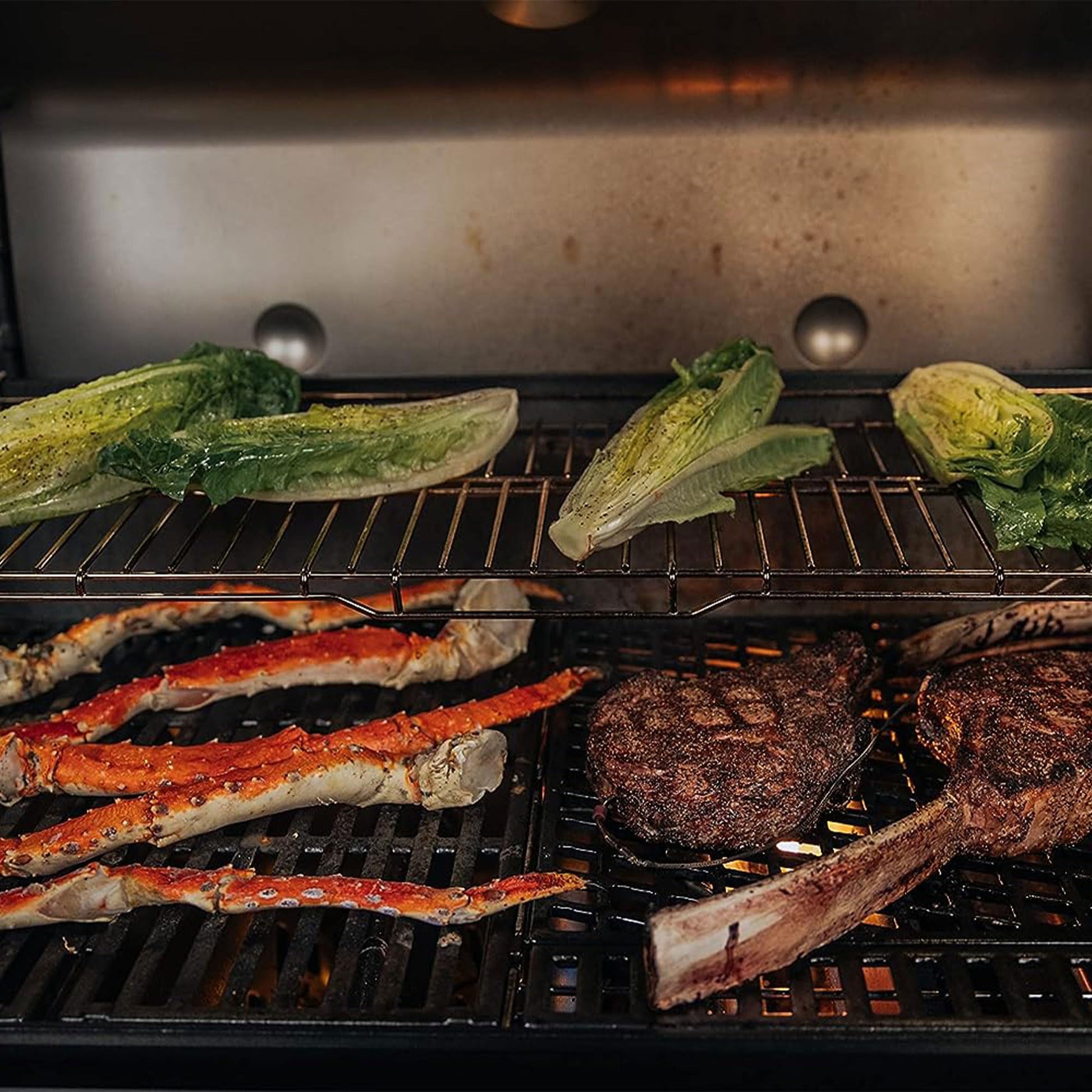 - Sear multiple steaks at once on the extra-large sear zone