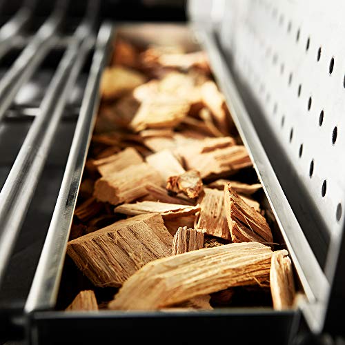 - Comes with side burner, sear burner, and smoker burner with stainless-steel smoker box.Dimensions - Lid Open (inches) 57.1 H x 74.1W x 30 D. Dimensions - Lid Closed (inches) 50.5 H x 74.1 W x 26.5 D(Inches). Primary cooking area (square inches) 624